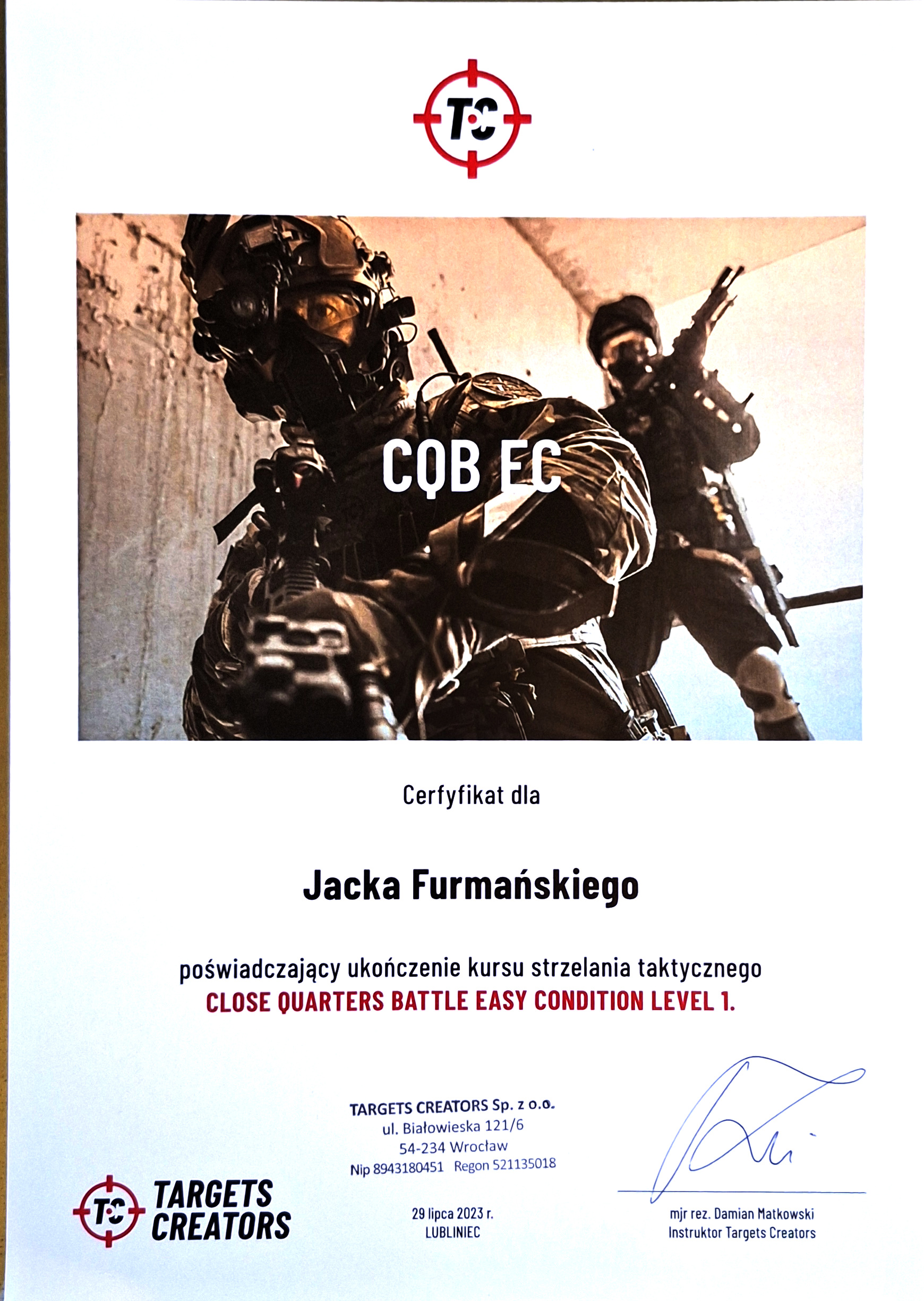 ZAINTERESOWANIA: SPORT, SZTUKI WALKI 1DAN KARATE GO JU RYU, STRZELECTWO BOJOWE, CZLONEK KLUBU STRZELECKIEGO KS KOBE.